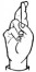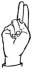 На ћирилици написано ЈАБУКА ХАРАЧИ састоји се из 12 слова [?]. Исписано ћириличном једноручном азбуком за глувонеме: